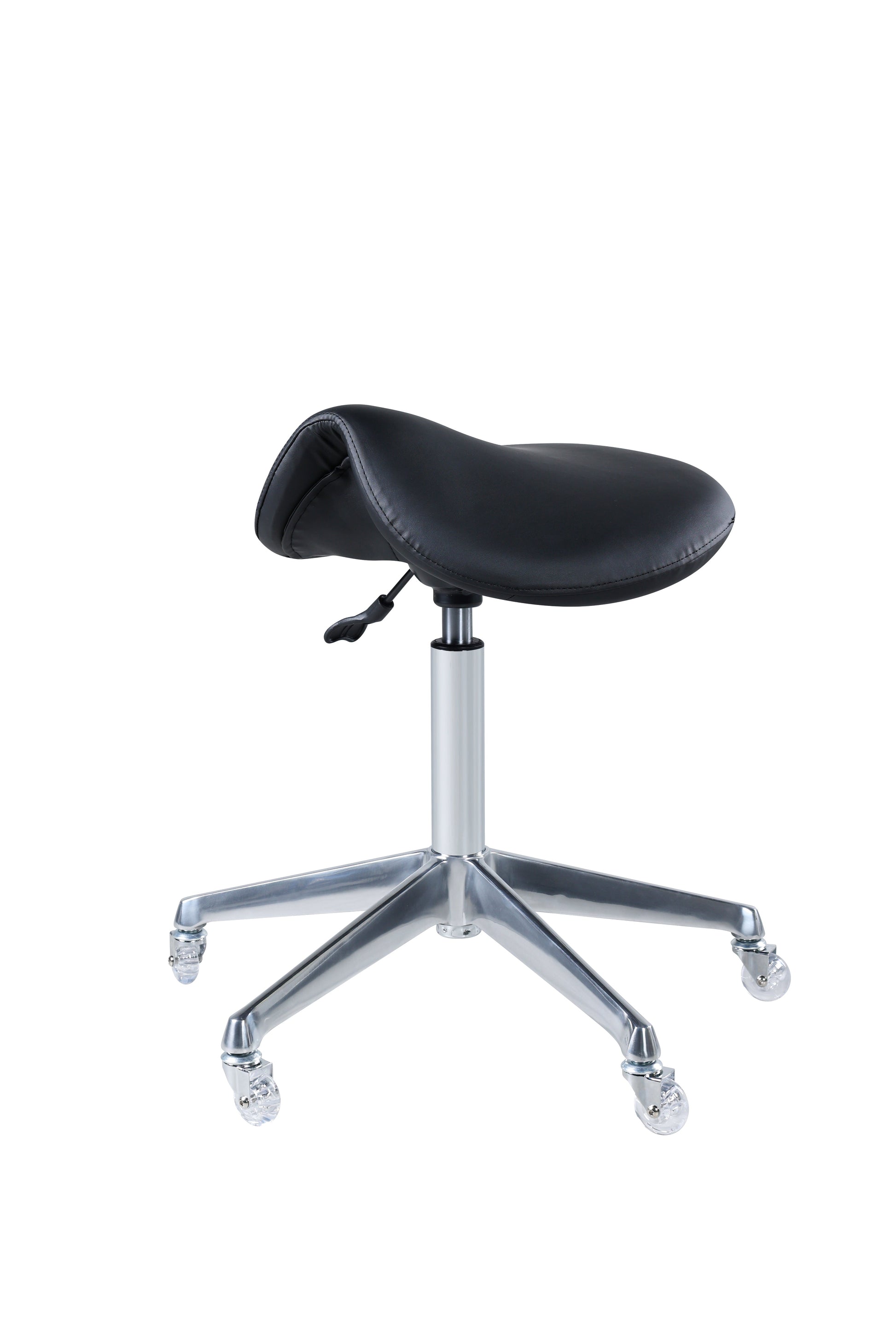 Enhance your salon’s elegance effortlessly with this stunning stool, ideal not only for salons but also perfect for tattoo parlours and medical clinics. Designed to blend style with comfort, it features a saddle-shaped seat with thick foam cushioning and lustrous PU leather upholstery. Equipped with five smooth nylon castor wheels for seamless mobility and a 360° swivel function, it offers full flexibility. The stool also includes a sturdy footrest and base for added support, along with an SGS-certified gas lift for adjustable height. Invest in this refined piece to elevate both comfort and sophistication in your workspace.