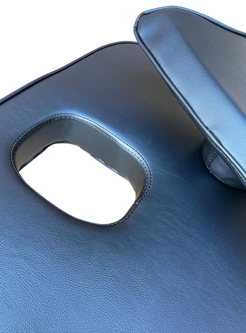 Strong and sturdy massage table, the pillow removes to reveal the face hole. The backrest will also raise if required and has a handy storage rack under the bed. Covered with our signature Antimicrobial Germ resistant, fire retardant Vinyl and high-density foam that will last for years.