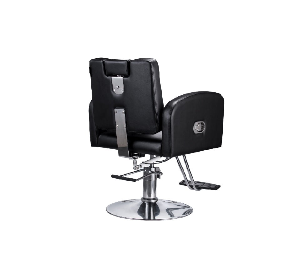 A classic salon chair featuring a spacious, cushioned seat and backrest, a durable footrest, and an adjustable, polished chrome base for versatile salon use. This chair also features a reclining function, making it ideal for Threading, Brow Treatments, Facial waxing and more.