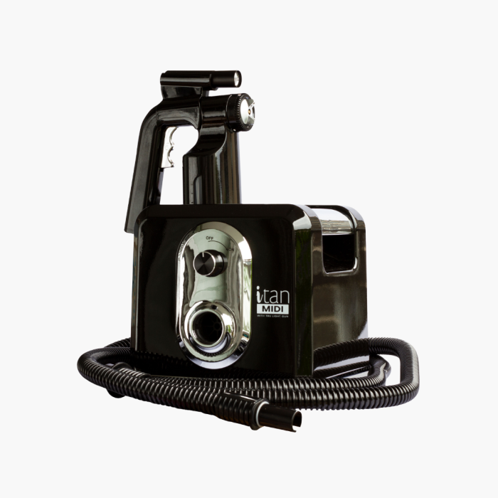 Introducing the iTan Midi with Tru Light Spray Gun—a professional-grade HVLP spray tan system showcasing Tru Light innovation. The iTan Midi compressor offers adjustable air pressure, while the Tru Light spray gun, equipped with stainless steel components, enhances flow, speed, and spray tan control, delivering an ultra-fine mist. Together, they create an optimal environment for flawless tanning applications in a perfectly illuminated setting. Say goodbye to uneven coverage and embrace a radiant, streak-free tan with the iTan Midi and Tru Light Spray Gun.