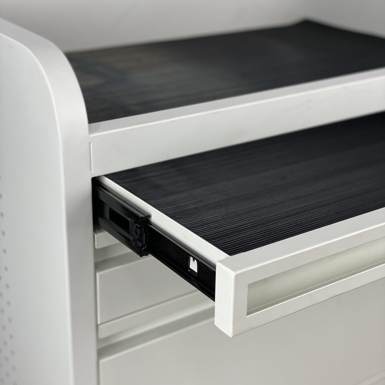 Our high-quality WIDER Fusion PLUS White 4 Drawer Hairdressing Beauty Trolley. Now with a WIDER 100% steel construction frame you can store more of your favourite SALON tools, while offering to keeping them organised in 4 uniquely designed WIDER drawers. To keep all your important tools safe the EXTRA WIDE top and drawers are each supplied with an anti-slip ribbed rubber mat. All the rubber mats can be easily removed for easy cleaning.