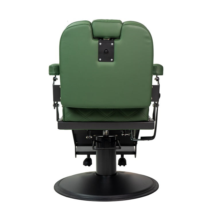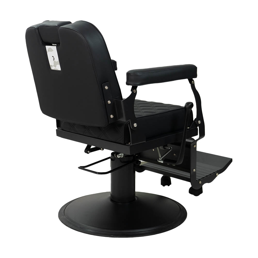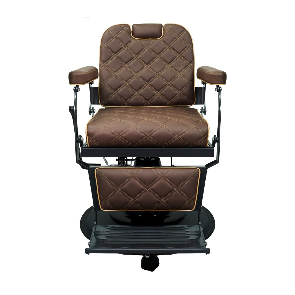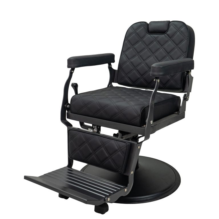 Designed for comfort and durability, it features plush, quilted upholstery in a classic diamond pattern, adding a touch of sophistication to any barber setting. The chair is equipped with padded armrests and a sturdy footrest, ensuring clients remain comfortable during their sessions. The heavy-duty base provides excellent stability, in conjunction with the new 300kg rated pump. Ideal for barbershops looking for a mix of luxury and practicality.