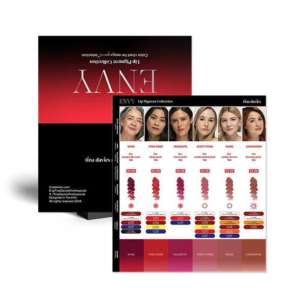 The Tina Davies Envy Lip Collection transforms clients’ lips with its range of deep berries, bold pinks, and everyday nudes. These bold and wearable shades offer clients a modern and fashionable take on classic lip colour options.