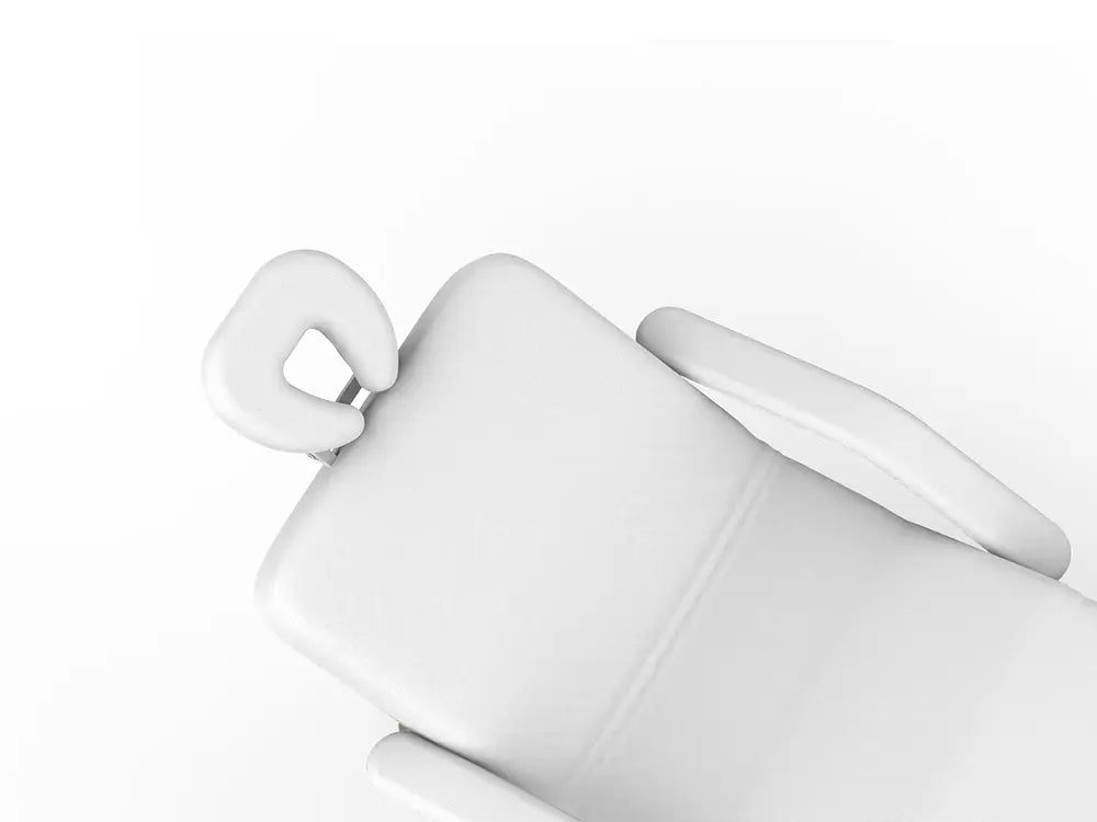 This elegant beauty bed features a sleek and minimalist design, effortlessly blending soft curves with clean lines. Upholstered in pristine white, Medical Grade Antimicrobial germ-resistant vinyl, the cushioning is plush and supportive, ensuring maximum client comfort during any treatment. The seamless surface not only enhances the aesthetic appeal but is also easy to clean and maintain—ideal for a professional setting.